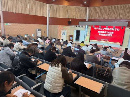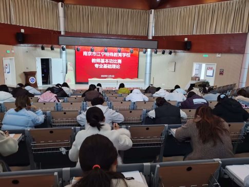 为持续深化教师专业素养,夯实特殊教育理论根基,2025年12月2日下午,南京市江宁特殊教育学校在报告厅顺利举办了教师专业基础理论比赛。本次比赛以笔试闭卷形式进行,限时两小时。全体参赛教师积极参与,展现了扎实的知识储备和严谨的治学态度。